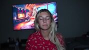 Amateur college blonde Ambie Bambii gets a deep creampie while her parents are out